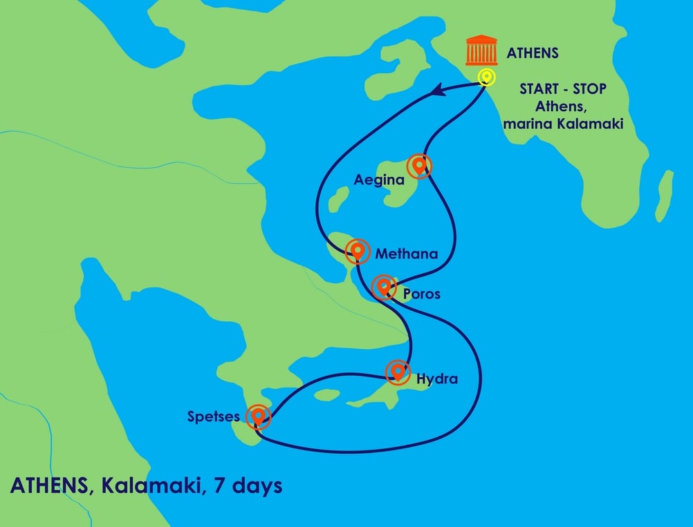 The skipper welcomes you on board and, when all the guests have arrived, we will enjoy a welcome drink. In the evening we can go ashore and enjoy a nice dinner in Athens. A tram stops just outside the entrance of the marina and we’ll be in the cozy centre in no time.